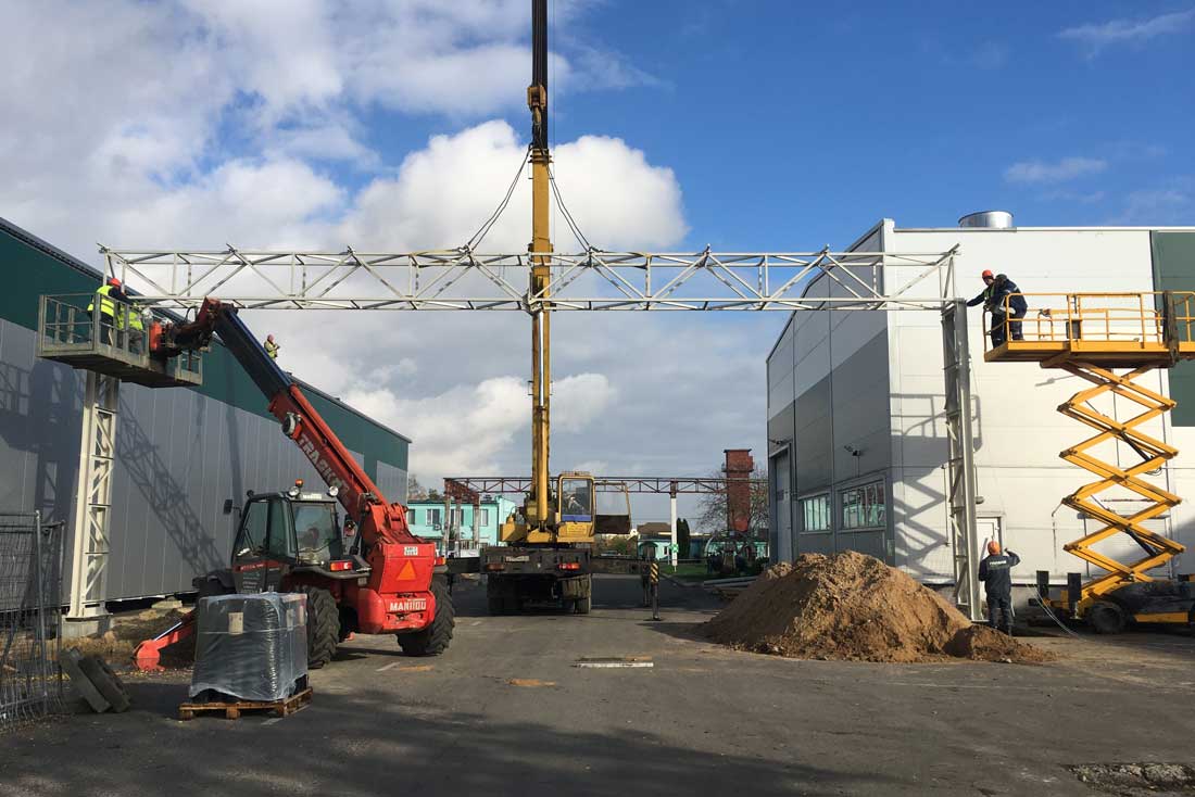 Большая часть работ были выполнены собственными силами, монтаж металлоконструкций, устройство кровли, устройство фасадов, благоустройство и другие работы.