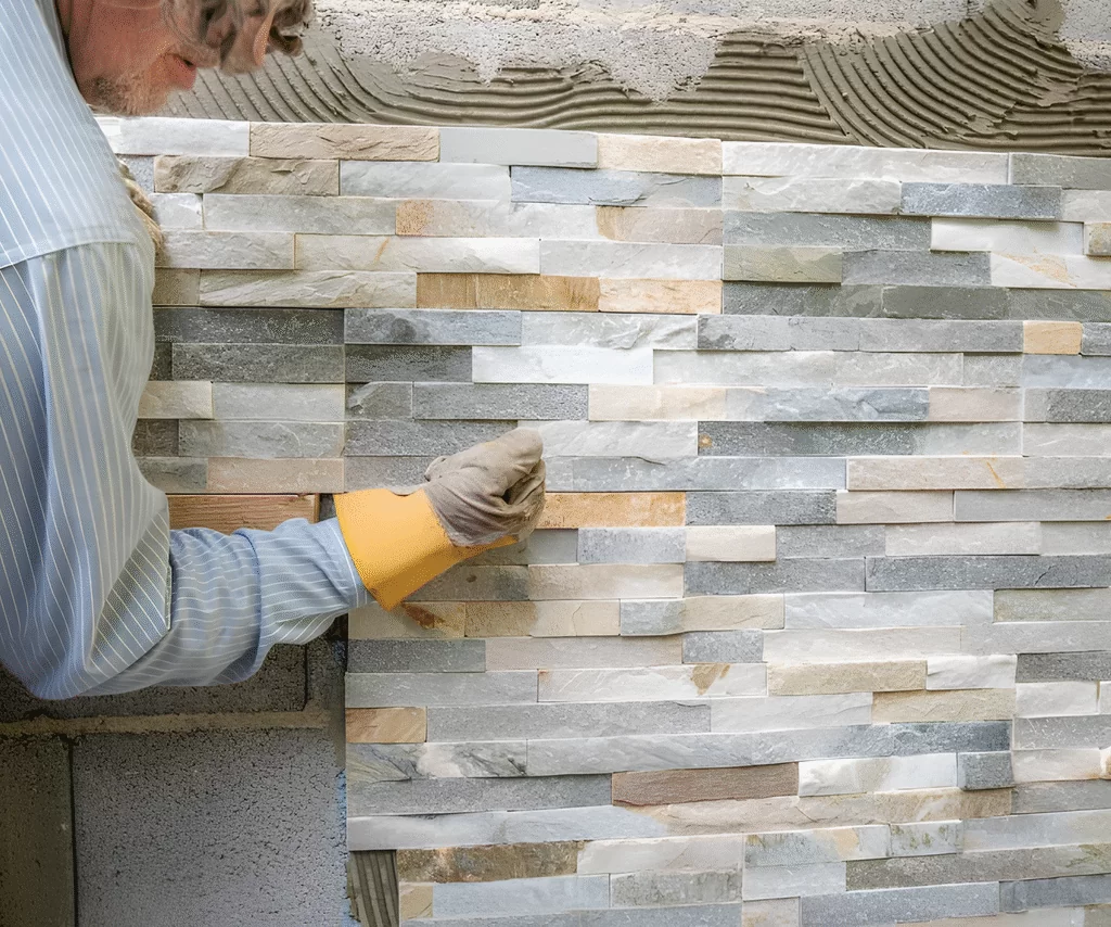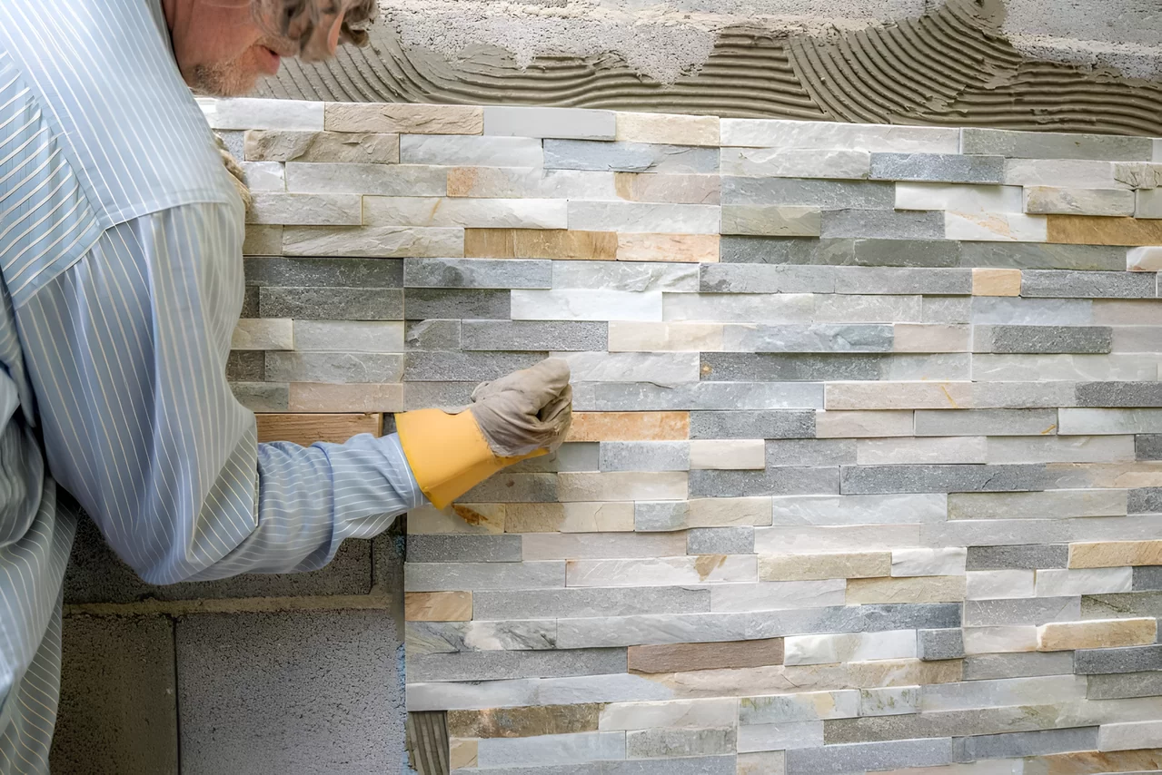 Отделка стен начинается с монтажа декоративного камня. Мы используем профессиональное оборудование и качественные клеевые составы для обеспечения надежности и долговечности.