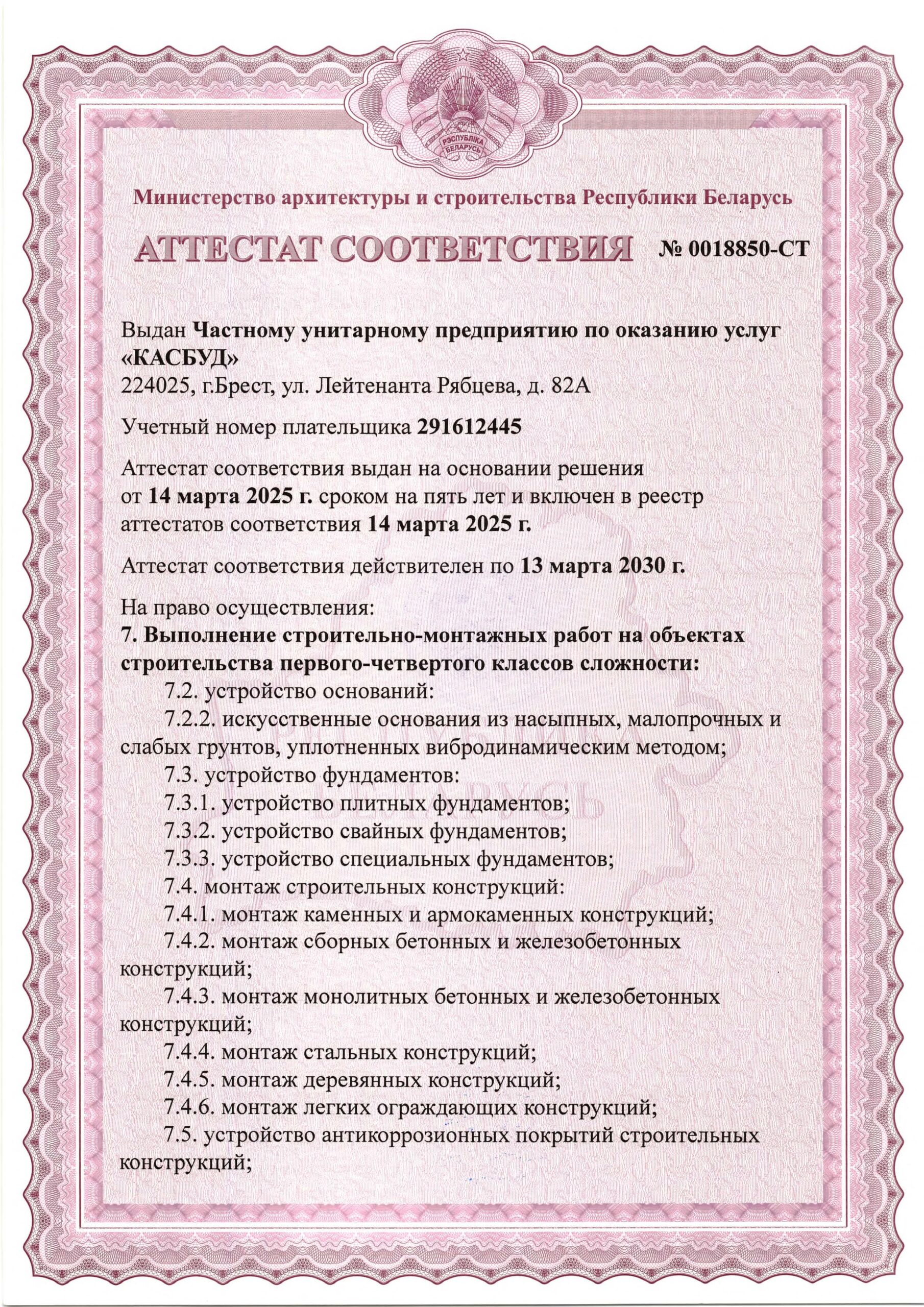 Команда компании “КАСБУД” , много лет работая на рынке строительных услуг в Бресте и по Беларуси в целом, успело стать лидером рынка и  поучаствовать в самых разнообразных по видам и уровню сложности строительных проектах (от работ по реконструкции жилых домов до масштабного строительства многофункциональных объектов).