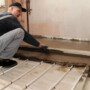 Перед началом работ необходимо очистить пол от загрязнений, старого покрытия и мусора. Это обеспечит хорошую адгезию стяжки к основанию.