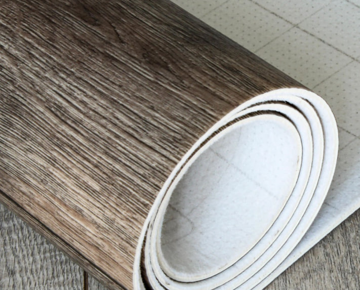 Если требуется, мы сначала укладываем подложку, которая служит дополнительной изоляцией и сглаживает неровности основания. Это особенно важно при укладке линолеума на бетонный пол, так как подложка увеличивает комфорт и продлевает срок службы покрытия.